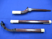 左図が五つ折れの三味線です。右図の三つ折れのものと比べると一本一本がかなり短くなっています